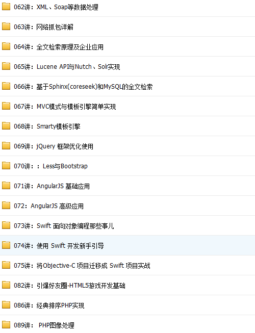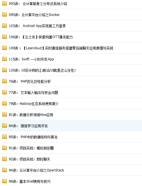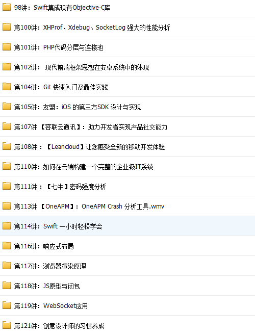 本套视频共106讲,为直播录制版,由优才学院CEO伍星老师、CTO刘志华老师等知名全栈讲师主讲,内容涵盖Web前端、Web后端、移动端、网络等方面知识。